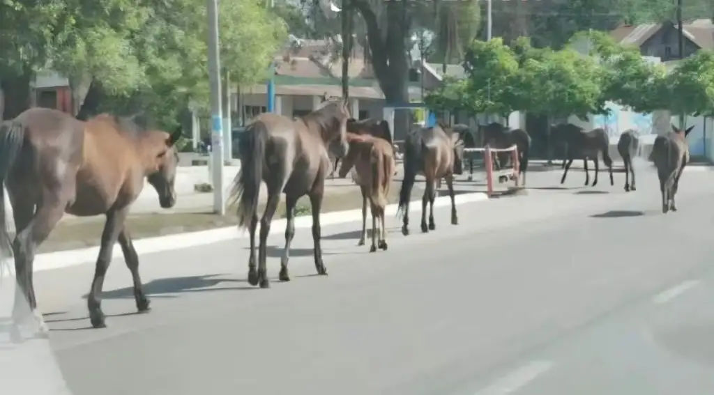 Vecinos de la localidad de Santa Ana expresaron su preocupación por la seguridad de los niños y transeúntes debido a la presencia de una docena de caballos en plena vía pública.