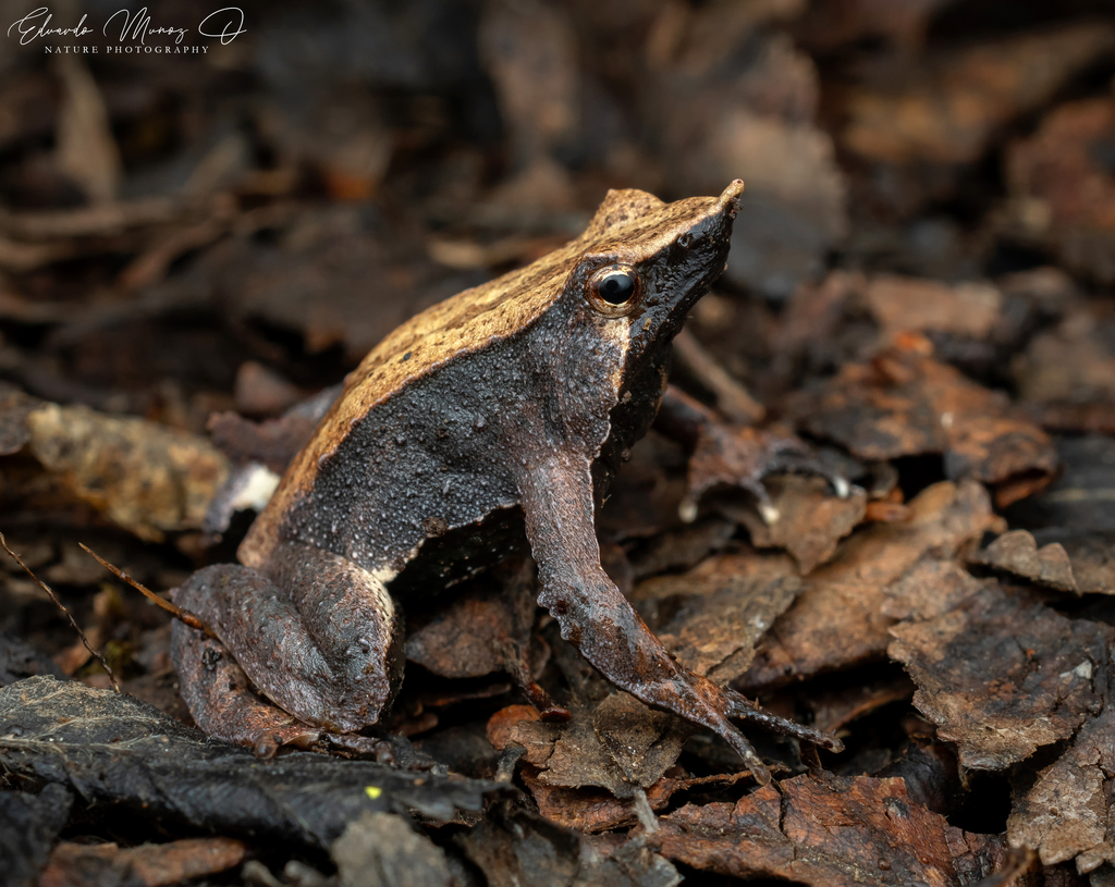 Es una rana pequeña, pues su talla está entre 2,5-3,5 centímetros. Además, tiene una cabeza de forma triangular con una extensión nasal larga y algo puntiaguda. Su piel es básicamente lisa con solo algunas glándulas verrugosasComo estrategia de camuflaje, puede presentar una coloración variable. Así, su color va desde verde a distintas tonalidades de café.