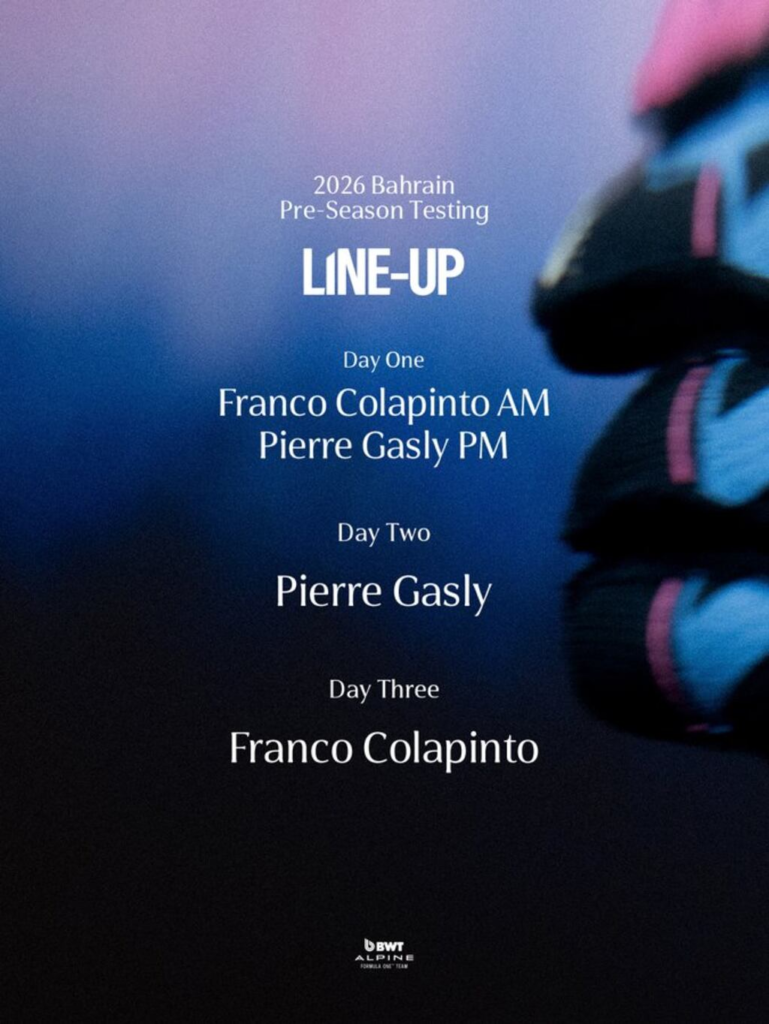 El plan de Alpine para esta fase de tests es intercalar los turnos de pilotos de cara a la acumulación de kilómetros y a los ajustes necesarios antes de que comience el campeonato. Por ello, se espera que Colapinto regrese al volante del A526 el viernes, cuando la actividad en Bahréin continúe con la tercera y última jornada de este bloque de pruebas.