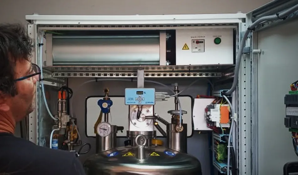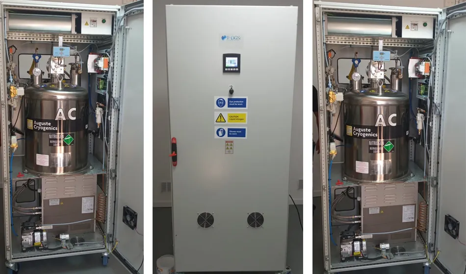 El aparato, identificado con la marca Cryogen.10, funciona captando el nitrógeno del aire, separándolo de otros gases que componen la atmósfera y transformándolo en nitrógeno en estado líquido mediante un proceso de licuación. Técnicamente, puede producir alrededor de 10 litros por día, lo que lo convierte en una herramienta eficiente para cubrir las necesidades internas del centro de investigación.