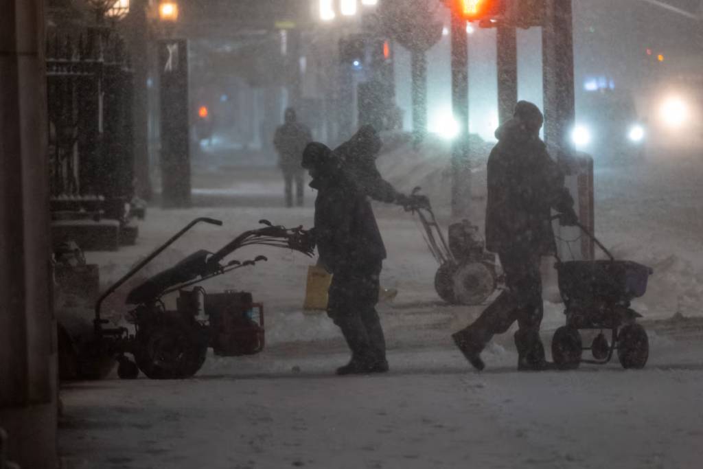 Trabajadores despejan las calles cubiertas de nieve en Nueva York (AFP)